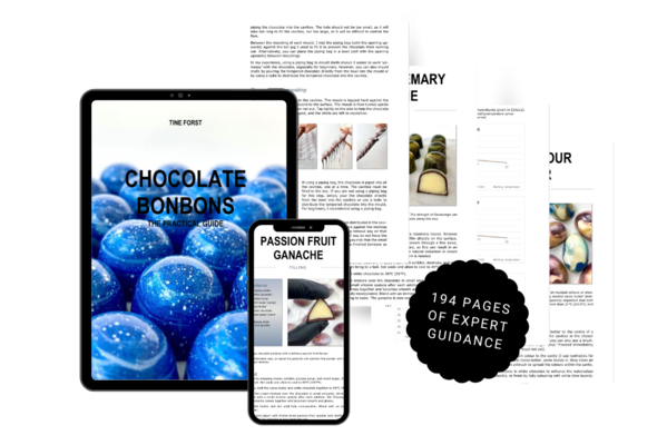The guide is based on my own methods, refined through over ten years in the chocolate kitchen – including my 3 Simple Steps to Shine, The Smart Ganache Method, and my complete workflow from tempering to unmoulding.